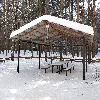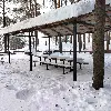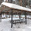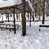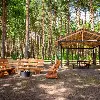 Крытый навес. Комфортный деревянный стол и лавки из бревен. Удобный большой мангал с разделочным столом. Освещение. Костровое место. Индивидуальная огороженная территория