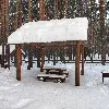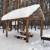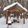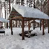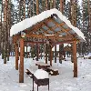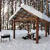 Маленькая беседка. Комфортный деревянный стол и лавки из бревен. Удобный большой мангал. Освещение. Электричество