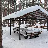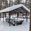 Крытый навес. Комфортный деревянный стол и лавки из бревен. Удобный большой мангал с разделочным столом. Освещение. Костровое место. Индивидуальная огороженная территория