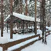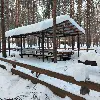 Крытый навес. Комфортный деревянный стол и лавки из бревен. Удобный большой мангал с разделочным столом. Освещение. Костровое место. Индивидуальная огороженная территория